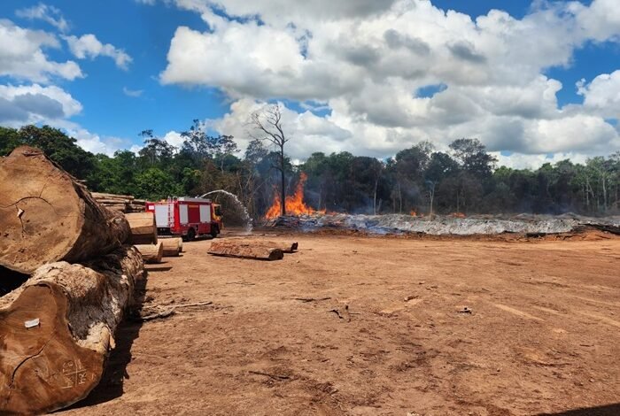 Um incêndio de grandes proporções atingiu uma indústria de madeira no município de Mazagão desde as 19h da sexta-feira (26) e já ultrapassa 15 horas de duração. As chamas alcançaram principalmente resíduos de madeira acumulados no local, material de alta combustão que tem dificultado o trabalho das equipes de emergência.